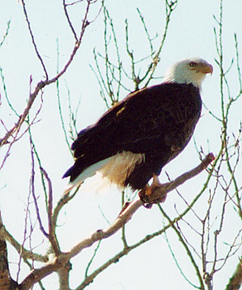 BALD EAGLE HIGH ATOP A TREE ADJACENT TO THE MISSISSIPPI RIVER