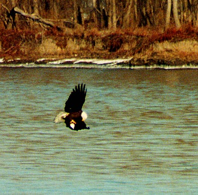 A BALD EAGLE "PICKS UP SOME LUNCH" BELOW LOCK AND