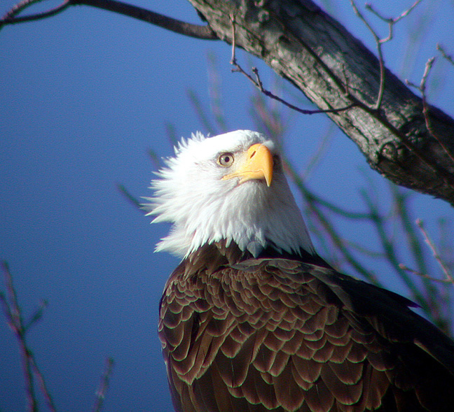A BALD EAGLE OVERLOOKS THE MISSISSIPPI RIVER ALONG THE