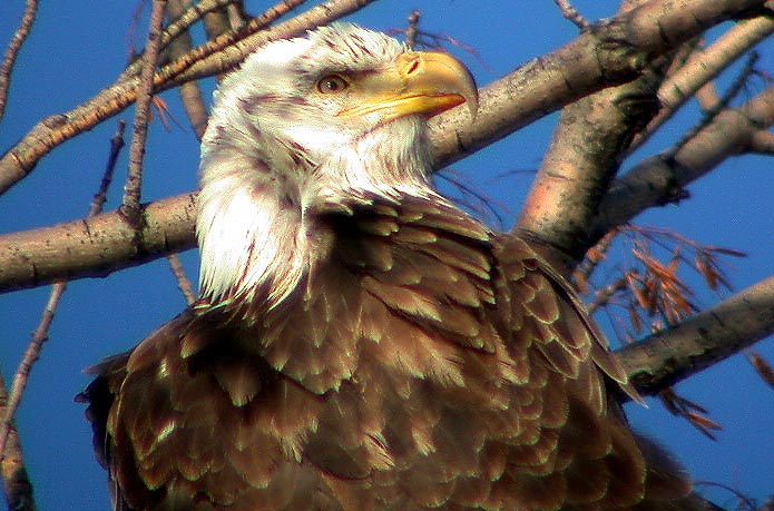 A BALD EAGLE ALONG THE GREAT RIVER ROAD NEAR GRAFTON, ILLINOIS